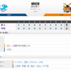 【 試合結果!】< 巨 5-1 中 >巨人4連勝!先発マイコラスは7回1失点で8勝目!長野の先頭打者HR!小林・マイコラス・阿部が適時打!
