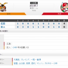 【 巨人試合結果!】< 巨 6-4 広 >東京ドームで広島に今季初勝利!宮國同点打にマギー適時打2回に逆転!小林弾に村田橋本到適時打!