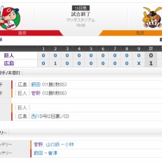 【 巨人試合結果・・・】< 巨 0-1 広 >巨人、カープ薮田を攻略できず完封負け!先発・菅野は西川のHR 1本に泣く・・・