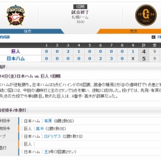 【 巨人試合結果・・・】< 巨 4-5 日 > 巨人逆転負け・・・4番手・高木が大誤算・・・