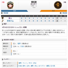 【 巨人試合結果!】< 巨 7-3 日 > 巨人連勝! 先発・菅野7回3失点で7勝目!8回マシソン・9回中川が0封!打線も10安打7得点!