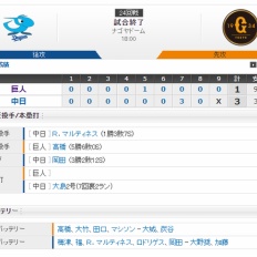 2019年09月18日 試合結果 vs 中日 【 巨人試合結果・・・】< 巨 1-3 中 > 巨人敗れる・・・先発・高橋6回までノーヒット投球!7回ピンチで交代すると中継ぎ陣が抑えれず・・・DeNAは試合がなかったためマジックは4のまま