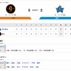 【巨人試合結果!】<巨5-2De> 巨人逆転勝利!中島・丸・岡本にHR!ウィーラー移籍後初H!先発・戸郷6回1/3を2失点で2勝目!