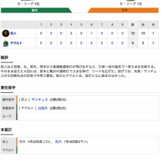 【巨人試合結果!】[巨12-0ヤ] 巨人大勝利! 丸タイムリー! 坂本タイムリー2本! 岡本タイムリーとソロで3安打!