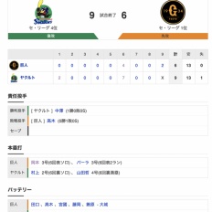 【巨人試合結果…】[巨6-9ヤ] 巨人逆転負け…岡本バックスクリーン弾含む4安打! パーラ一時逆転2ラン!6回中継ぎ陣が崩れ計7失点…