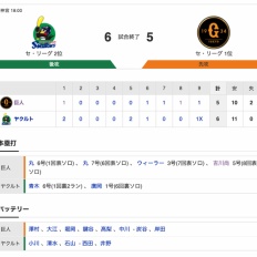 【巨人試合結果…】<巨5-6ヤ> 巨人敗れる…丸が2発!ウィーラーと吉川のHR等で同点に追いつくも9回裏に点を取られ敗れる…