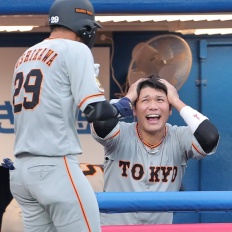 【画像】HRを打った巨人・吉川尚輝をベンチで迎える坂本の表情www