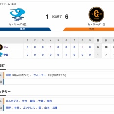 【巨人試合結果!】<巨6-1中> 巨人勝利!岡本勝ち越し打!大城先制2ラン!ウィーラー代打2ラン!