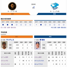 【巨人実況!】vs 中日(19回戦)![9/25] 先発はサンチェス!捕手は小林!