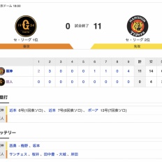 【巨人試合結果…】<巨0-11神> 巨人連勝ストップ… 先発サンチェス5失点、桜井2失点、田中豊4失点…打線も阪神・西に完封負け…