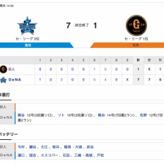 【巨人試合結果…】<巨1-7De> 巨人3連敗… 先発・今村3失点、大江2失点、桜井2失点…打線は坂本のタイムリー1点のみ