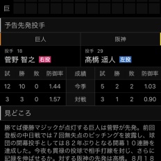 ワイ「明日阪神が勝てばまだ巨人はマジック点灯しないで!明日の巨人先発は…」