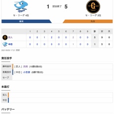 【巨人試合結果!】<巨人 5-1 中日> 巨人勝利!先発高橋、5回無失点で初の2桁勝利!