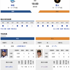 今日からの「中日 vs 巨人」3連戦…
