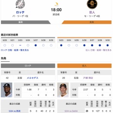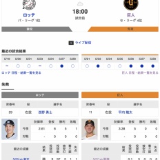 巨人・平内、先発!【5/30 ロッテ戦 予告先発】