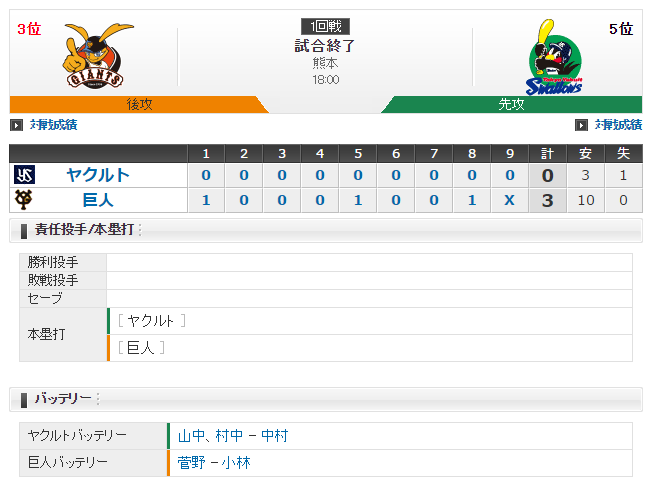 巨人、菅野の完封勝利で3連勝! pic.twitter.com/uZ5WJmdfQk