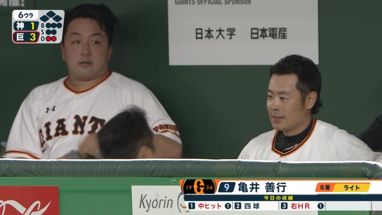 巨人 3-1 阪神#東京ドーム #ジャイアンツ #giants#亀井善行 pic.twitter.com/6wUArLBG4Q