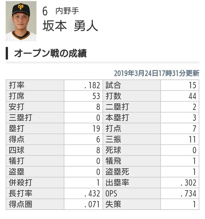 坂本のオープン戦てほんと当てになんねえよなここまでバケモンになるとは