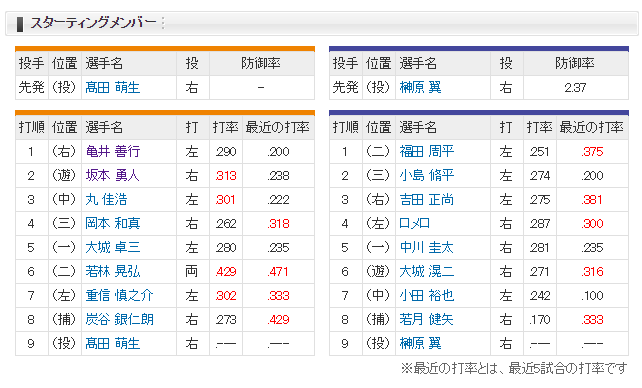 あす6月20日の予告先発