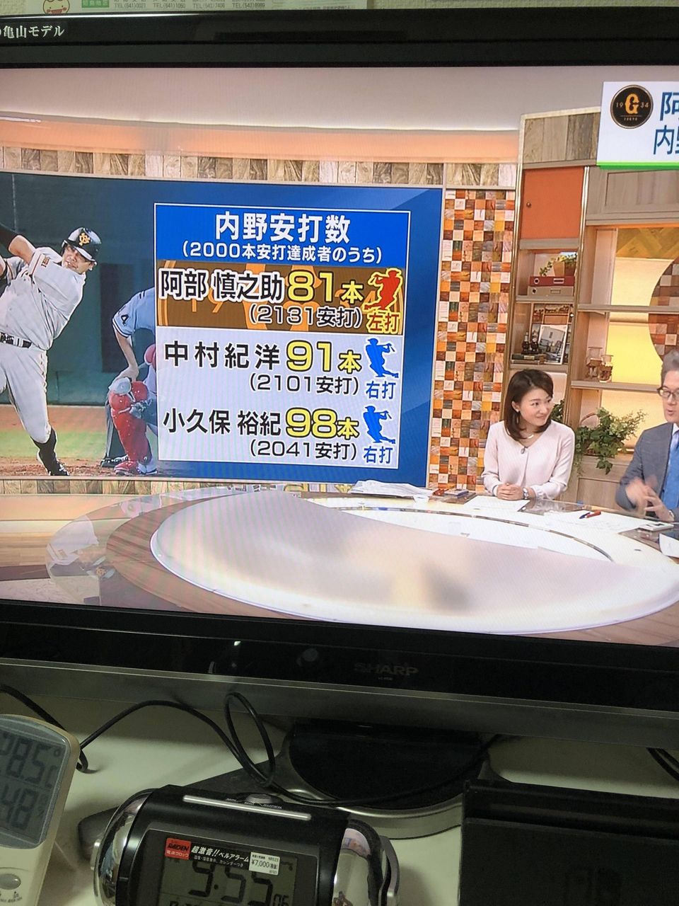 阿部慎之助(34) .340 27本 104打点 OPS.994