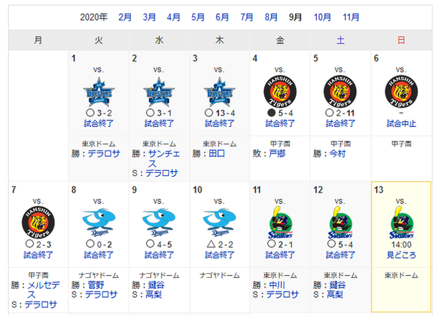 負けた阪神戦ってのはリリーフ打たれてないんか?