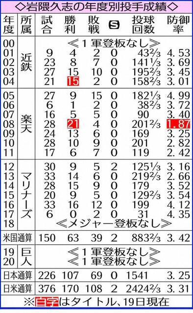 ここ数年、巨人では18年の杉内(一軍投手コーチ)や19年の阿部(二軍監督)など引退後、間を置かず指導者となるケースが多かった。果たして将来、岩隈がどんな指導者となるのか、注目だ。