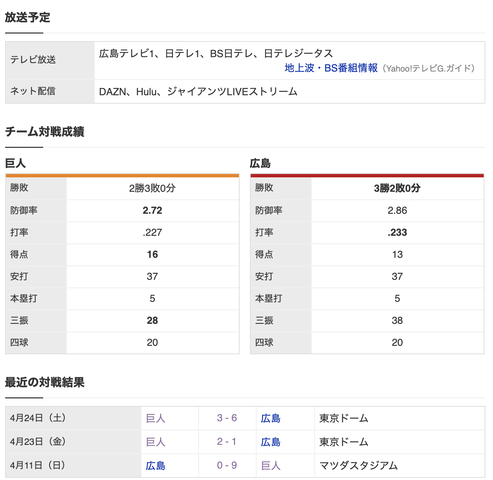 【広島】 【巨人】