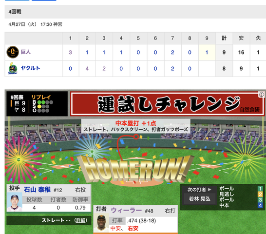 『4/27 ヤクルト × 巨人 ~神宮~』
