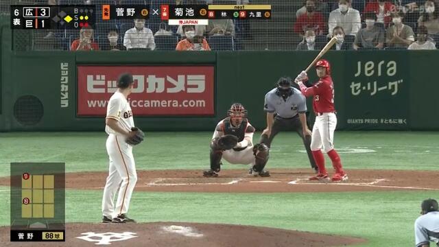 もっとベースから離れたところ構えないと今の菅野の球だとストライクゾーンいっちゃう可能性あるって捕手ならわかるやろ