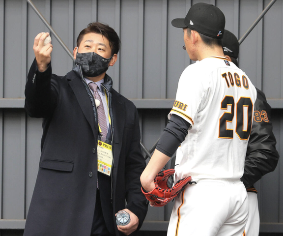戸郷は松坂氏と対面してスライダーの握りを教わった。「平成の怪物」から伝授された極意を早速、実践していた。