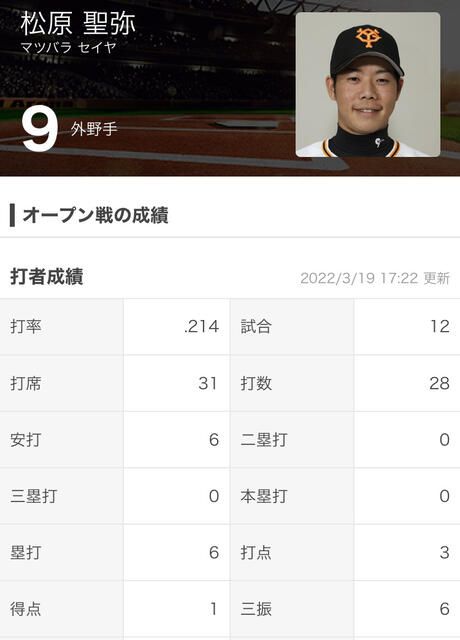 3月2日の西武戦(東京ドーム)で「1番・中堅」でスタメン出場して4打数無安打に倒れると、その後の試合では7、9番など下位に。淡白な打席が目立ち、オープン戦で打率.154と結果を残せず、13日に2軍に合流した。