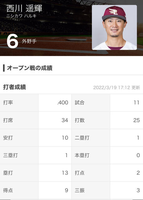 球界屈指のリードオフマンとして活躍し、昨季は自身4度目の盗塁王を獲得。通算出塁率.380と出塁率が高く、俊足で好機を広げられることから1番打者として適任の存在だ。巨人も昨オフに獲得に名乗りを挙げる報道が見られたが、西川は楽天に入団した。