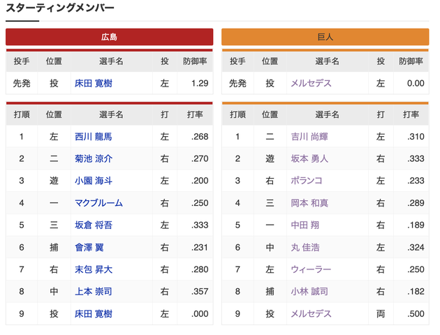 メルセデス、開幕2連勝へ先発 広島は床田寛樹…スタメン発表 https://t.co/GYB0Gkj1z9 #巨人 #ジャイアンツ #読売ジャイアンツ pic.twitter.com/0zCErjoZIi