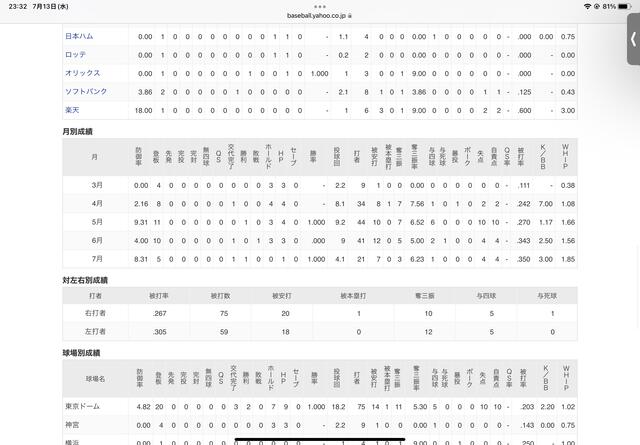 球速が5キロ以上落ちて制球落ちたらこうなる