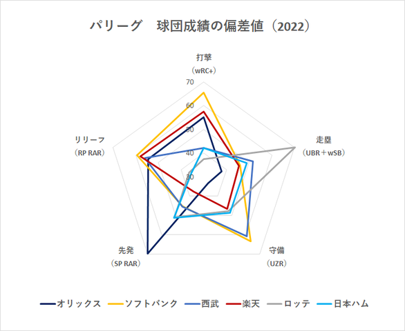 球団成績の五角形グラフが見づらいね