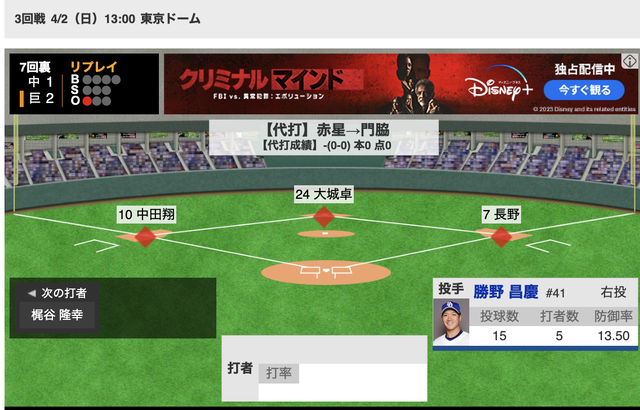 結果打ったけど、1死満塁で長野→門脇の代打順はかなり疑問だわ