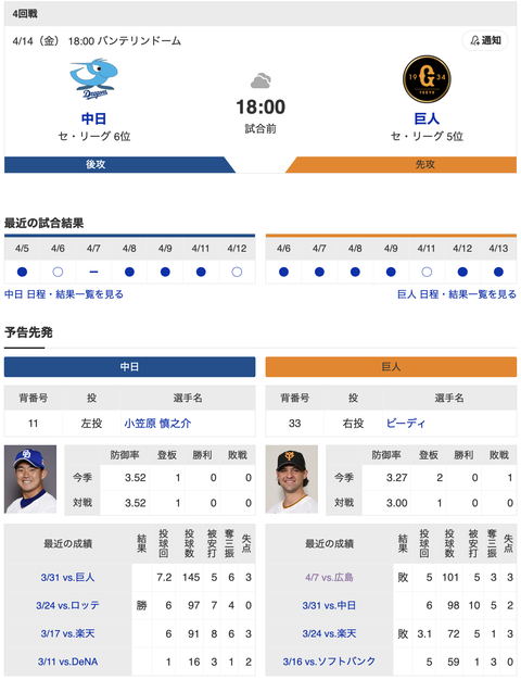 ふつうに巨人負けそう