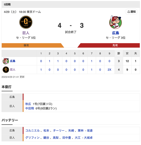 敗戦投手 広島 栗林 (0勝4敗7S)