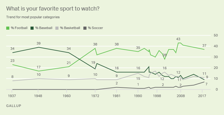 オールスターは1970年の28%をピークに1990年までは2ケタを常時キープしていた。ところが、出場選手数が多くなってファン投票の先発メンバーが5回で交代するなど、試合としてのおもしろみに欠けることで2010年代は1ケタの数字で低迷し続けた。