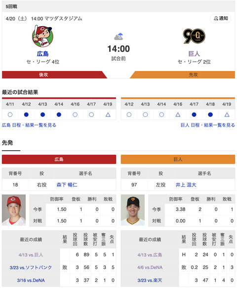 — スポーツ報知 巨人取材班 (@hochi_giants) April 20, 2024