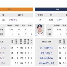 今日の巨人先発は戸郷、西武先発はエンス…