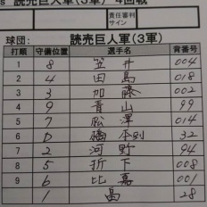 本日の巨人3軍・・・炭谷が守備に就く!クックは先発で5回3失点・・・